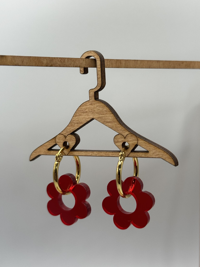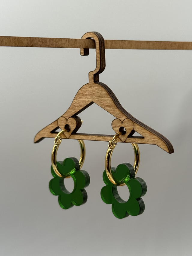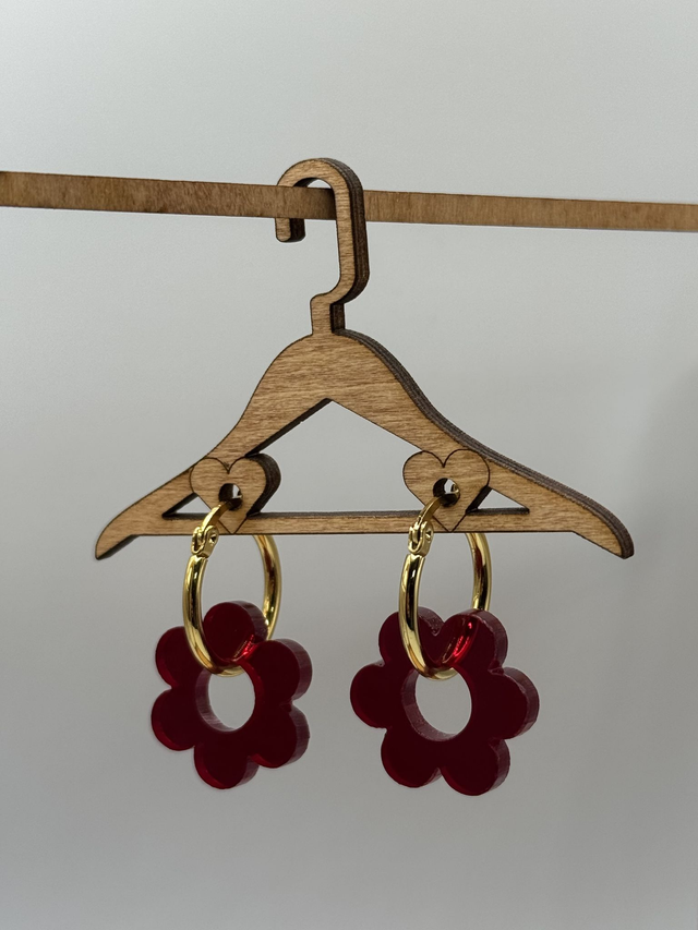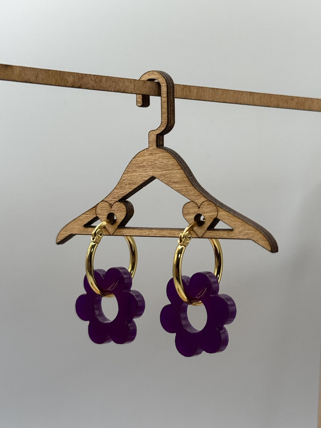 Design : Fleur rétro à 6 pétales, parfaitement découpée, montée sur des anneaux dorés brillants pour un rendu moderne et élégant.